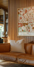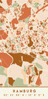 Un drammatico poster nero nei toni della terra, dove una mappa dettagliata della città si sviluppa come una rete grafica di strade, canali e quartieri. Emiliano Deificus combina minimalismo e colori caldi per un'espressione contemporanea che conferisce alla stanza profondità e direzione e invita a nuove scoperte urbane. I contorni sottili sottolineano il ritmo della città.