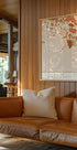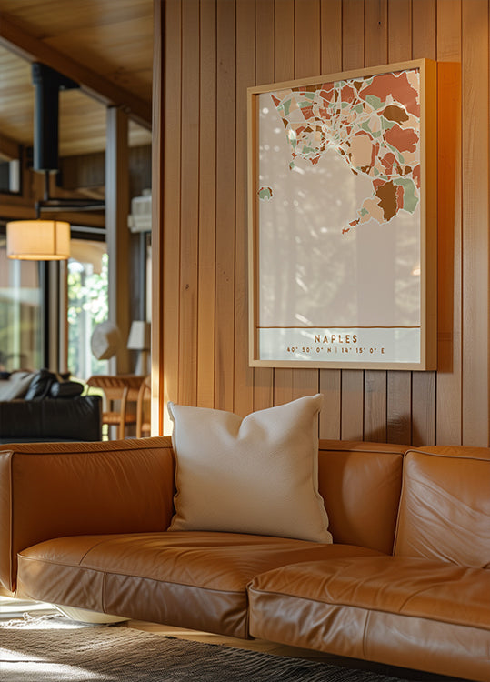 Black Maps Earth Tones 58 di Emiliano Deificus cattura Napoli come una mappa poetica e oscura, dove i toni caldi della terra disegnano la rete stradale, i quartieri e la costa sinuosa. I sottili contrasti enfatizzano il ritmo della città e forniscono un'espressione grafica raffinata che dona calma, profondità e carattere alla parete. Crea una concentrazione tranquilla.