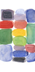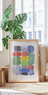 Un moderno poster astratto con blocchi colorati ad acquerello disposti in giocose forme geometriche. Le tonalità sovrapposte di blu, rosso, verde, giallo e nero creano un'espressione vibrante ma minimalista, perfetta per interni moderni e pareti di gallerie.