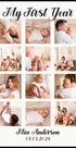 Un bellissimo poster personalizzato per celebrare il primo anno di vita del tuo piccolo. Questa stampa collage fotografico cattura dodici ricordi preziosi, dai momenti appena nati ai primi traguardi. Un ricordo senza tempo e il regalo perfetto per genitori, nonni o per l'arredamento della cameretta.
