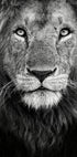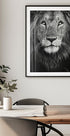 Uno splendido ritratto di leone in bianco e nero che mette in risalto lineamenti maestosi e uno sguardo intenso. Questa fotografia naturalistica cattura il re della giungla con dettagli sorprendenti, mostrando la bellezza della natura e la forza cruda del regno animale.