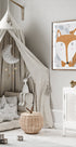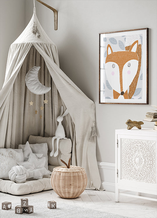 Poster con simpatica volpe rossa con motivo a foglie grigie dell'artista Carla Daly