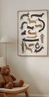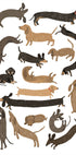 Un'illustrazione affascinante e giocosa di bassotti in varie posizioni: stretching, corsa e relax. I caldi toni della terra e lo stile disegnato a mano rendono quest'opera d'arte perfetta per gli amanti dei cani, le camerette dei bambini o per chiunque ami l'arte murale divertente e amichevole.