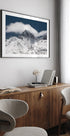Un tranquillo paesaggio invernale si svolge in toni chiari e bluastri: maestose cime innevate si elevano sopra valli nebbiose, mentre morbide nuvole vagano nel cielo. L'atmosfera pulita e fresca invita alla contemplazione e alla tranquillità. Uno sguardo poetico sulla forza e sul silenzio delle montagne, creato da Xiaoyang Wang. Perfetto come punto focale tranquillo nel soggiorno.