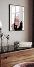 Un'interpretazione giocosa e moderna di un'icona classica, questa illustrazione mostra una donna affascinante con perle e guanti che soffia una gomma. Lo stile minimalista e i forti contrasti uniscono l'eleganza vintage alla sfacciata pop art, perfetta per gli amanti della moda e dell'arredamento moderno.