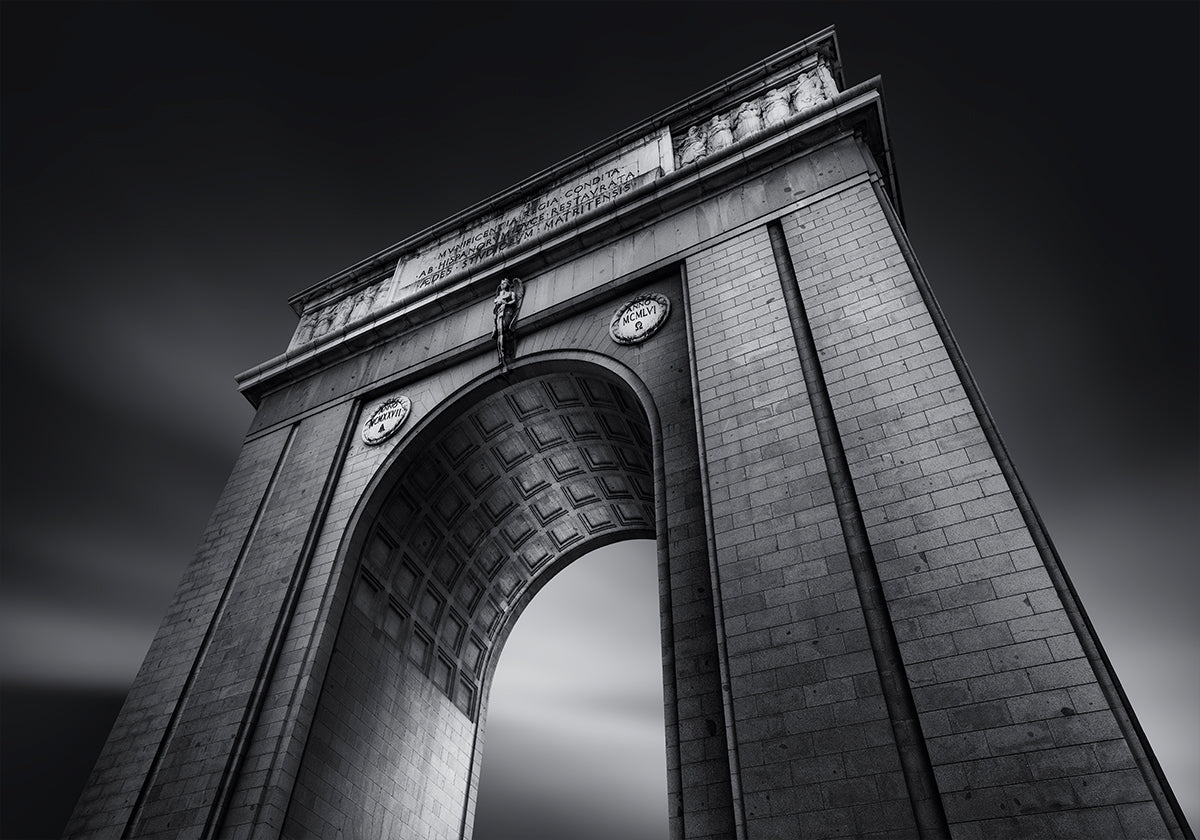 Il fotografo Jorge Ruiz Dueso incornicia un monumentale arco di trionfo in un sorprendente bianco e nero, utilizzando un'audace prospettiva dal basso per amplificarne la potenza. Dettagli in pietra pregiata, contrasti netti e linee guida ti trascinano attraverso il portale, evocando il ritmo storico di Madrid e il romanticismo dell'Europa. Un'ode raffinata al patrimonio urbano.