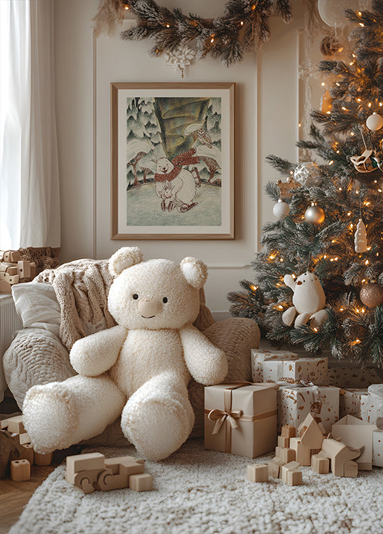 Creato da Olena Kovalova: Creatures of the North unisce un orso amichevole e un coniglio curioso in una terra innevata del nord. Tenui sfumature di rosso, verde e verde acqua e un tocco vintage donano una calda atmosfera natalizia, mentre i dettagli silenziosi invitano presenza e intimità nelle tranquille giornate invernali. Perfetto per gli angoli intimi del Natale.