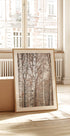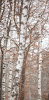 Una scena pacifica nella foresta con sottili betulle che si ergono alte con la loro corteccia bianca su uno sfondo autunnale e invernale tenue. I rametti pregiati e le foglie rimanenti creano un'atmosfera poetica che unisce il calore dell'autunno con la calma dell'inverno. Perfetto per gli amanti della natura e delle case accoglienti.