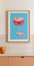 Questa vivace opera d'arte raffigura un cocktail stilizzato in un bicchiere, decorato con petali rosa e gialli, su uno sfondo blu brillante. Le pennellate fluide del dipinto creano un'espressione moderna ed energica, perfetta per temi legati alle bevande o all'arte contemporanea.