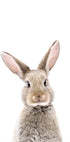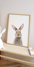 Un bel ritratto di un coniglietto catturato su uno sfondo bianco puro. La morbida pelliccia, le orecchie erette e l'aspetto innocente rendono questo pezzo perfetto per le camerette dei bambini, gli asili nido o per chi ama i graziosi ritratti di animali.