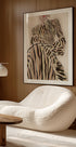 Zebra Elegance unisce l'illustrazione di moda minimalista e la forza grafica della natura. Una silhouette elegante a strisce ispirate alle zebre crea ritmo e movimento, mentre i toni neutri forniscono calma e raffinatezza. Perfetto come pezzo da appendere alla parete: chic, moderno e irresistibilmente elegante. Crea attenzione sia in soggiorno, camera da letto e galleria.