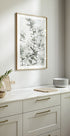 Un poster calmo e minimalista con rami di eucalipto in tenui sfumature verdi su uno sfondo chiaro. Le foglie rotonde formano un ritmo leggero e organico che porta freschezza ed equilibrio all'interno. Un motivo senza tempo di Pictufy Studio III, perfetto per le case nordiche e un'atmosfera armoniosa e naturale. Crea calma e leggerezza nella stanza.