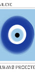 Un'illustrazione audace e moderna del tradizionale simbolo del malocchio, che rappresenta protezione e allontanamento dell'energia negativa. Il caratteristico design circolare in blu e bianco crea una forte espressione minimalista con un significato culturale.