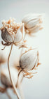 Un primo piano morbido e calmo di fiori secchi nei toni del beige cremoso. Con il suo elegante minimalismo e l'estetica calma, quest'opera d'arte trasmette un senso di quiete e bellezza raffinata, perfetta per interni moderni.