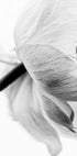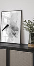 Un'accattivante fotografia in bianco e nero che cattura le trame fini e i dettagli di un fiore che sboccia. La composizione minimalista evidenzia la naturale eleganza dei fiori ed è una scelta raffinata per interni moderni, country o ispirati alla fattoria.