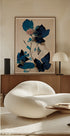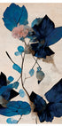 Una raffinata opera d'arte botanica con pregiati fiori secchi e sorprendenti foglie blu su un morbido sfondo beige. Il contrasto tra le forti tonalità blu e lo sfondo tenue crea un'espressione sofisticata e senza tempo, ideale sia per interni moderni che classici.