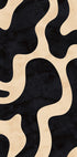 Un'opera d'arte astratta sorprendente con forme organiche nere e audaci che scorrono su un caldo sfondo beige. Il design ondulato e fluido e la superficie strutturata offrono un'atmosfera moderna ma allo stesso tempo terrosa, perfetta per interni giapponesi, scandinavi o contemporanei.