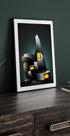 Forme strane di Juan López Ruiz unisce forme astratte e ritmi architettonici in una composizione giocosa. Strati grafici e angoli acuti danzano in calde tonalità gialle con contrasti audaci che alludono allo spazio urbano di Madrid. Un poster moderno e colorato che aggiunge dinamismo e personalità a qualsiasi parete.