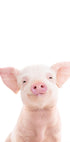 Un commovente ritratto di un maialino catturato su uno sfondo bianco puro. Il muso rosa, gli occhi gentili e l'espressione giocosa danno una sensazione di innocenza e fascino. Perfetto per l'arredamento della fattoria, le camerette dei bambini o per chi ama i graziosi ritratti di animali.