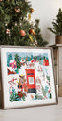 Un'illustrazione natalizia poetica di Caroline Bonne Müller: in un villaggio innevato, un cane felice con corna di renna e borsa imbuca i suoi auguri di Natale nella cassetta della posta rossa. I fiocchi di neve cadono sulle case e sugli abeti e la scena trasuda umorismo, calore e attesa – perfetta per la cameretta dei bambini e per un'accogliente atmosfera invernale.