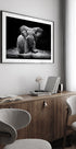 Un drammatico poster in bianco e nero di un elefante che attraversa le acque del fiume Kafue in Zambia. L'illuminazione soffusa evidenzia rughe, muscoli e spruzzi d'acqua, mentre la calma maestosa contrasta con la potenza. Fotografato da Gorazd Golob – un motivo forte e senza tempo per gli spazi moderni. Perfetto per attirare l'attenzione in soggiorno, in ufficio o in galleria.