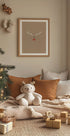 Un poster natalizio minimalista di Kristina N. – SoulArt Shop: un'elegante renna in tenui sfumature beige, con corna distintive e un caldo naso rosso che ricorda Rudolf. La calma atmosfera invernale e una composizione grafica semplice rendono il motivo una scelta elegante per il comfort della stagione. Perfetto per l'intimità natalizia nel soggiorno e nell'ingresso.