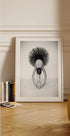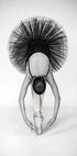 Una sorprendente fotografia in bianco e nero di una ballerina in un'aggraziata posizione di stretching. Catturata dall'alto, la ballerina è in equilibrio in punta di piedi con le braccia elegantemente protese verso il pavimento, mentre il tutù forma una perfetta cornice circolare. L'opera d'arte celebra la disciplina, l'eleganza e l'equilibrio del balletto classico.