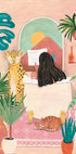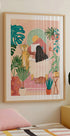 Poster Donna che fa il bagno nel bagno tropicale rosa