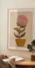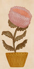 Un'affascinante opera d'arte ad acquerello raffigurante un delicato fiore rosa in un vaso dorato. Con uno stile vintage strutturato e tenui colori pastello, questo pezzo dipinto a mano combina un design retrò con l'eleganza botanica, una scelta senza tempo per la decorazione floreale.