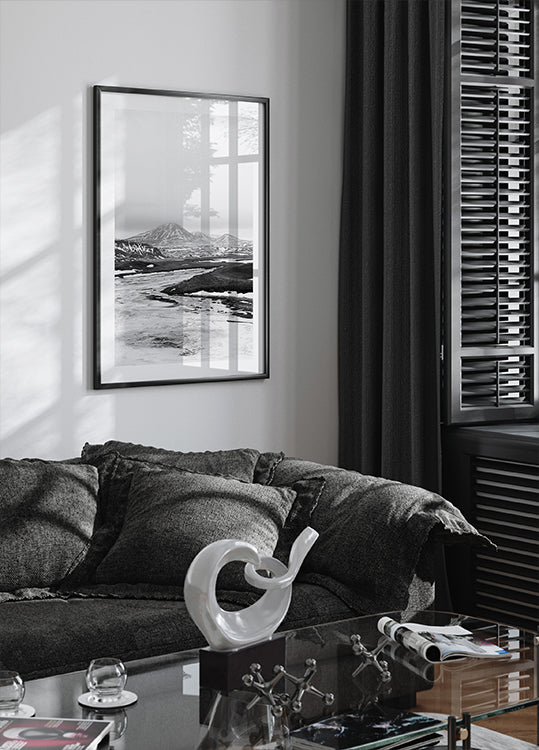 Poster in bianco e nero del fiume ghiacciato Islanda