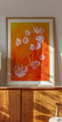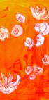 Un'opera d'arte floreale audace ed espressiva con pennellate dinamiche in calde tonalità ocra e arancio, accentuate da delicati fiori bianchi simili a orchidee. Ispirato agli stili espressionisti con un tocco moderno, questo pezzo porta calore ed energia tropicale in ogni spazio.