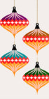 Un'opera d'arte natalizia colorata e giocosa con palline di Natale geometriche dai colori forti. Con forme astratte e motivi festivi, il design porta gioia e stile moderno alla decorazione murale stagionale, perfetta per le celebrazioni natalizie.