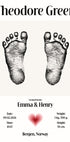 Un intramontabile poster personalizzato per bambini con delicate impronte di neonati e dettagli di nascita personalizzati: nome, data, ora, peso e altezza. Questa decorazione da parete minimalista ed emozionante è il ricordo perfetto per i nuovi genitori o un regalo premuroso per un baby shower o l'arredamento della cameretta.