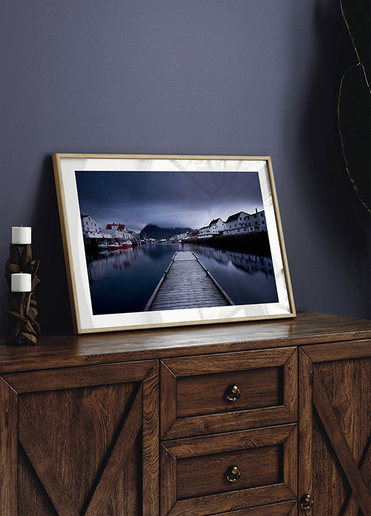 Quando scende la notte su Henningsvær alle Lofoten, le case di legno e le barche da pesca si riflettono nell'acqua immobile, mentre sopra la montagna si vedono le stelle. Lior Yaakobi cattura la calma e la profondità nordica con una drammatica linea prospettica attraverso il porto, dove la luce proveniente dalla banchina guida lo sguardo verso il cielo blu scuro. Una notte tranquilla nella luce artica.