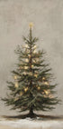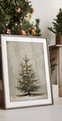 Un albero di Natale in stile vintage dai colori tenui si erge nella calma luce invernale con piccole luci dorate tra i rami verde intenso. Lo sfondo neutro e strutturato e un leggero accenno di neve conferiscono al motivo un'atmosfera natalizia tranquilla e nostalgica, perfetta per accoglienti decorazioni stagionali, gallerie a parete classiche o case scandinave.
