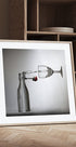 Versare? di Wieteke de Kogel è una natura morta concettuale in cui una bottiglia inclinata sembra versare acqua in un bicchiere di vino in una giocosa illusione ottica. La composizione è in equilibrio tra calma e tensione, con linee pulite, riflessi morbidi e una scena quotidiana che si trasforma in movimento poetico. Perfetto per pareti moderne.