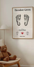 Un intramontabile poster personalizzato per bambini con delicate impronte di neonati e dettagli di nascita personalizzati: nome, data, ora, peso e altezza. Questa decorazione da parete minimalista ed emozionante è il ricordo perfetto per i nuovi genitori o un regalo premuroso per un baby shower o l'arredamento della cameretta.