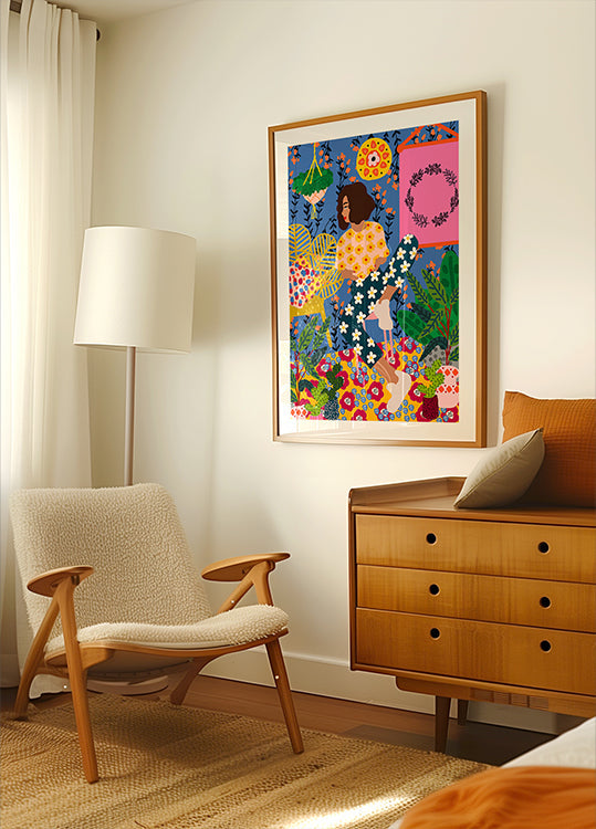 Floral Retreat Girl di Rafaela Mascaro - Carta di qualità premium con una superficie liscia e opaca e una sensazione elegante. La finitura opaca riduce i riflessi e dona un look raffinato e senza tempo. Robusto e durevole per un uso duraturo, ideale sia per ambienti professionali che per espositori decorativi.