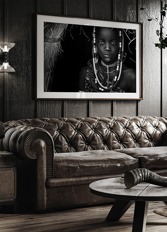 Mursi Girl di Hesham Alhumaid - Carta di qualità premium con una superficie liscia e opaca e una sensazione elegante. La finitura opaca riduce i riflessi e dona un look raffinato e senza tempo. Robusto e durevole per un uso duraturo, ideale sia per ambienti professionali che per espositori decorativi.