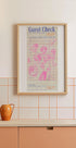 Un poster giocoso e alla moda che raffigura la carta ospite di un ristorante in stile vintage ricoperta da illustrazioni rosa di schizzi di cocktail e bicchieri di brindisi. Il mix di tipografia e arte grafica crea un design audace e moderno, perfetto per cucine, bar o per chiunque ami le stampe eccentriche.