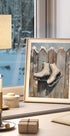 Una scena invernale poetica: un paio di pattini classici pendono con nonchalance sopra un vecchio recinto, tracce di neve e freddo nell'aria. Le tonalità tenui e nordiche e le luci soffuse creano calma, nostalgia e gioia invernale. Perfetto per incorniciare ricordi di piste di pattinaggio, giornate tranquille e piccole avventure. Il motivo è stato creato da Ohkimiko. In un'espressione semplice e senza tempo.