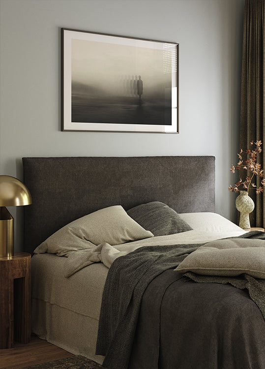 Un motivo poetico e inquietante di una figura maschile che scompare lentamente in un orizzonte nebbioso. L'immagine si muove in equilibrio tra il reale e il sognante, sollevando interrogativi sull'identità e sul tempo.