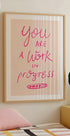 Sei un poster rosa tipografico Work in Progress