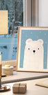 Polar Bear Dreams di Bainai è un'illustrazione affascinante e minimalista di un orso polare da sogno sul ghiaccio innevato su uno sfondo blu calmo. L'espressione giocosa e le forme morbide creano calore e calma, perfette per la camera dei bambini o per il moderno design d'interni nordico, dove intimità e fantasia trovano spazio. Porta sorrisi ogni giorno.