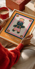 Una scena calda e accogliente con un omino di pan di zenzero sorridente circondato da biscotti appena sfornati, stelle di cannella e una spolverata di zucchero a velo su una tavola invernale. Toni morbidi e dorati e un'illuminazione soffusa incorniciano il motivo, mentre i rami di Natale sullo sfondo creano anticipazione, splendore invernale e pura felicità dei biscotti. Perfetto per il comfort invernale in cucina.
