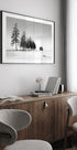 A Sunny Winter Day di Steven Zhou raffigura un luminoso paesaggio invernale in bianco e nero. Il sole brilla nella neve e nella brina mentre le oche passano davanti a un fienile solitario e a una fattoria. Gli alberi spogli e l'aria limpida creano un'atmosfera calma e pastorale con un'eleganza senza tempo e freddezza nordica. L'aspetto ad alto contrasto conferisce al motivo una calma moderna e grafica.