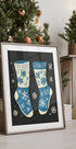 Le vivaci lettere blu risaltano su uno sfondo nero intenso, scandendo parole invernali giocose come "Calze" e "Maglieria" in un layout nostalgico e retrò. Fresco, grafico e sobrio, trasmette notti gelide, ricordi di giornate nevose e accoglienti vibrazioni stagionali, perfetto per portare una fresca atmosfera vacanziera negli spazi moderni.
