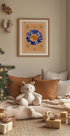 Un'affascinante illustrazione invernale di una calda volpe arancione circondata da una ghirlanda di foglie di verde acqua, bacche rosse e fiori delicati di ispirazione popolare. I fiocchi di neve danzano in una notte color indaco, creando un'atmosfera accogliente e fiabesca. Creato dall'artista Aliya Putrus – perfetto per le camerette dei bambini e le case invernali. Una dolce idea regalo nei colori del Natale.
