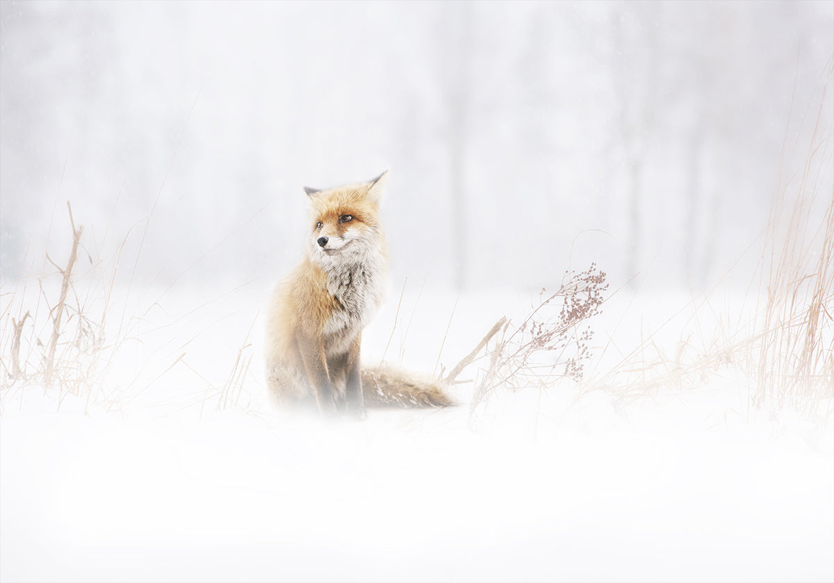 En rød ræv står stille i en frostklar skov, omkranset af fnuglet sne og dæmpet vinterlys. Stemningen er rolig og forventningsfuld—som et åndedrag før næste skridt. Waiting... af Doris Reindl indfanger naturens poesi og bringer vinterens stille magi ind i dit hjem. Perfekt til at skabe en nordisk atmosfære og et poetisk fokuspunkt året rundt.