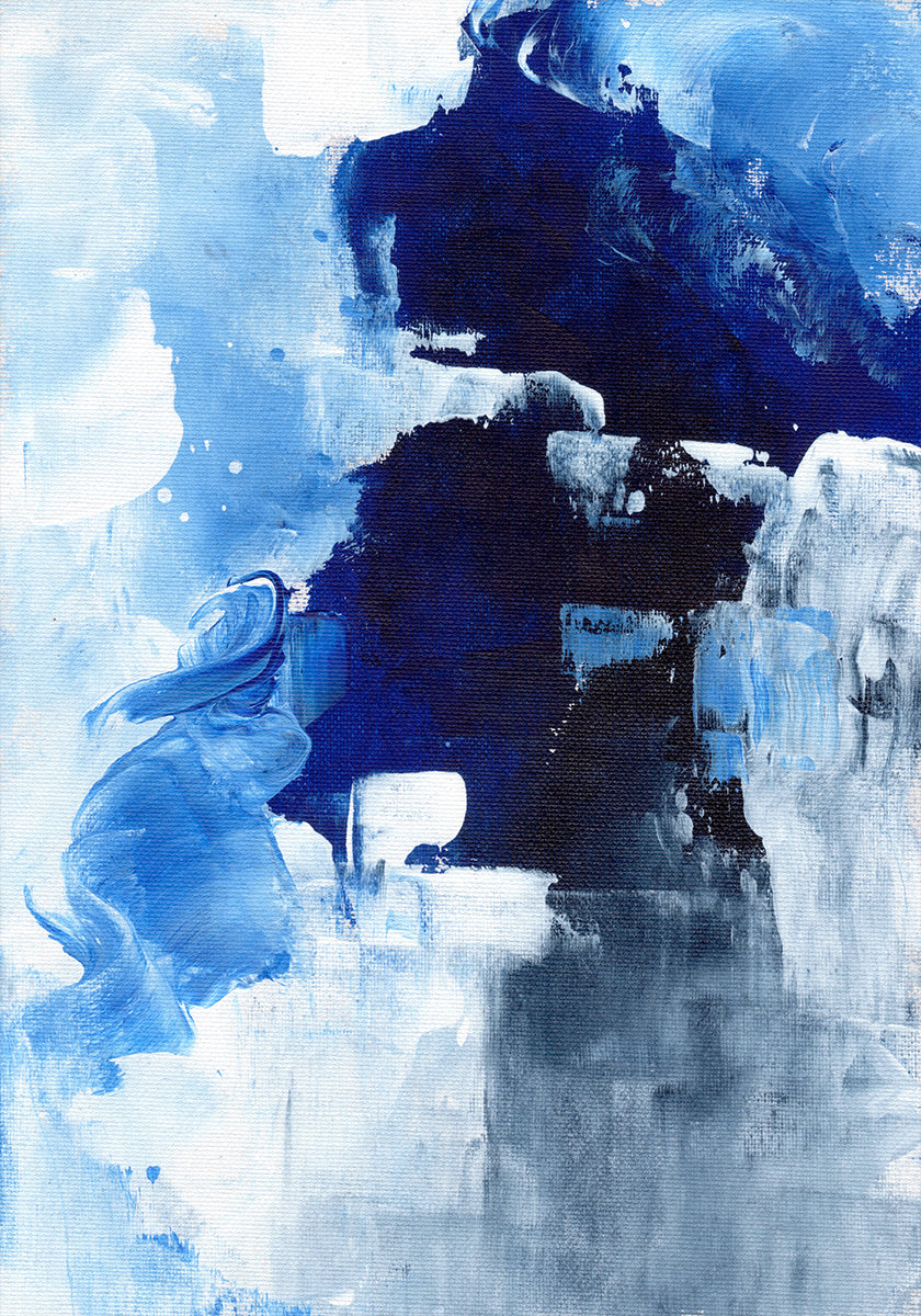 Et vintermørke folder sig ud i dybe blå nuancer og kølige penselstrøg, der danser som snefnug i natten. Abstrakte lag antyder frost, skygger og stille lys, som et glimt af nordlys over et frossent landskab. Winter Night af Ejaaz Haniff forener ro og bevægelse i et poetisk, farvemættet blik på kuldens skønhed.